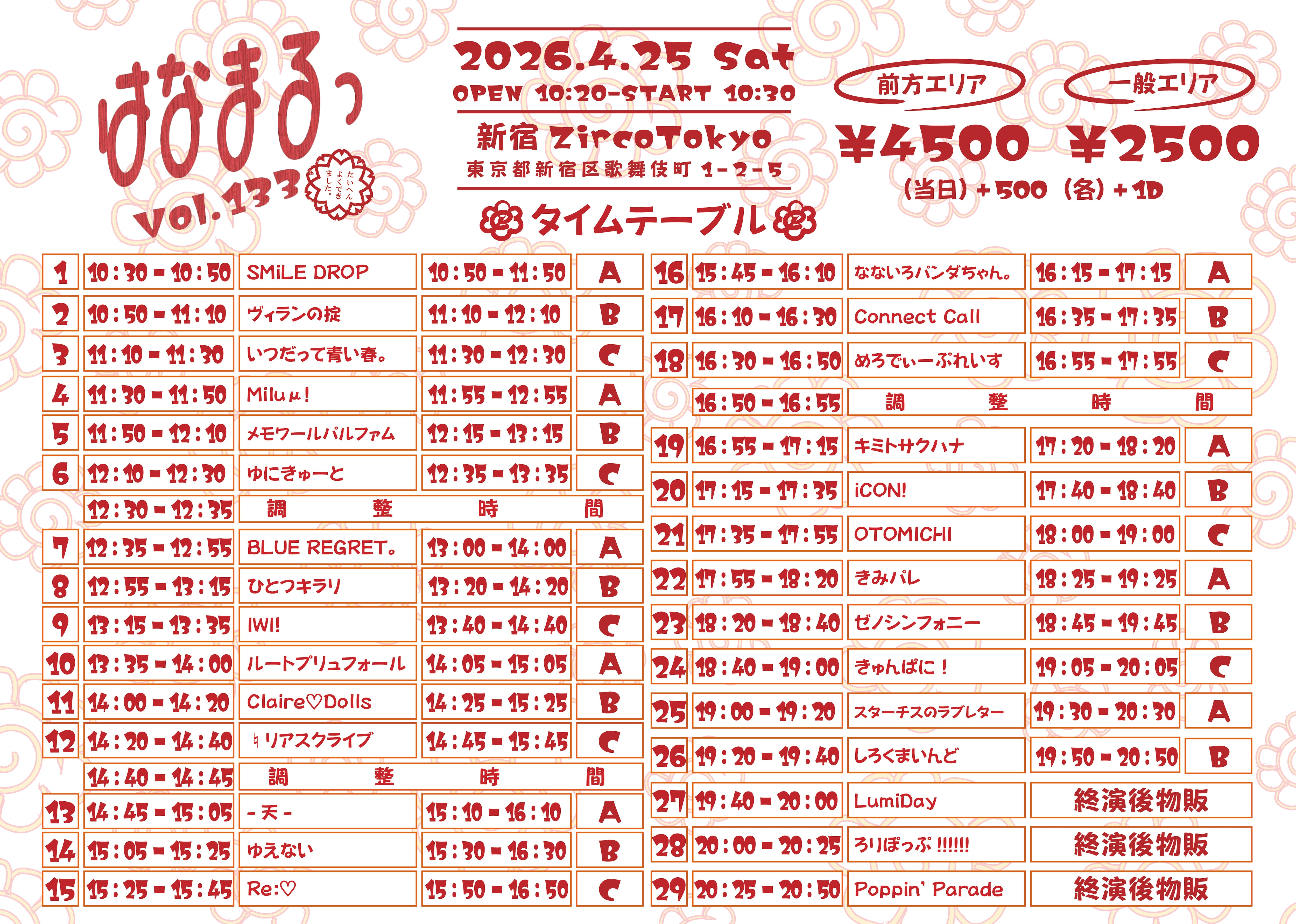 【4/25(土)】『はなまるっ Vol.133』@新宿Zirco Tokyo リモートチェキ!